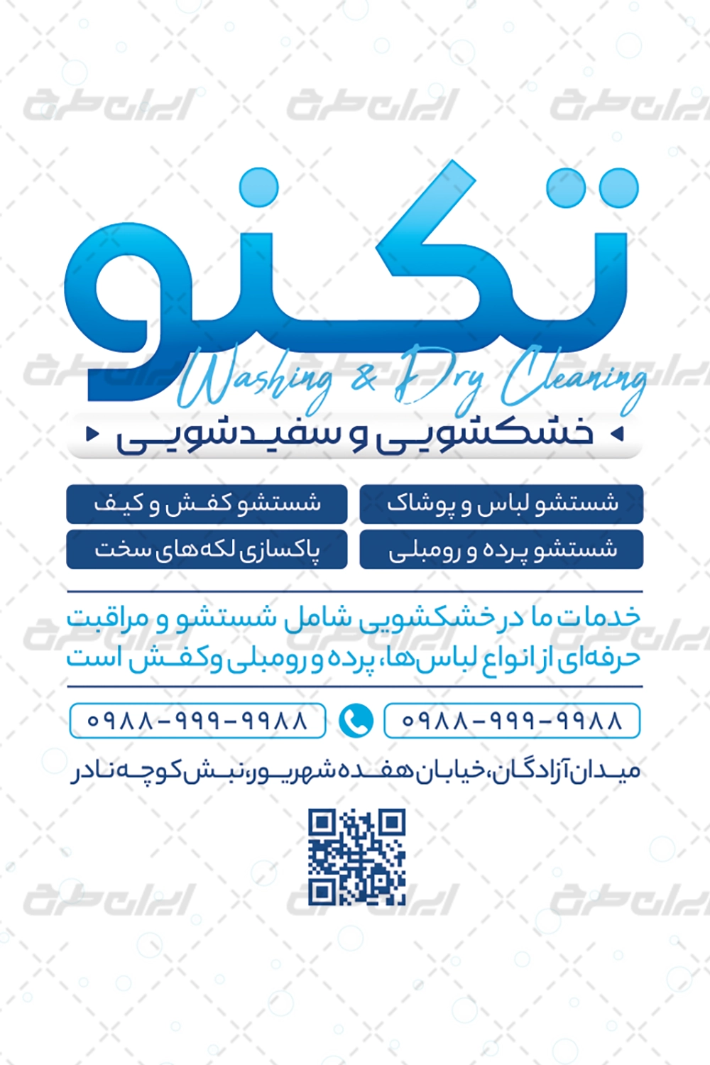 کارت ویزیت خشکشویی ،جهت تبلیغات این دسته از مشاغل توسط تیم ایران طرح طراحی شده است.