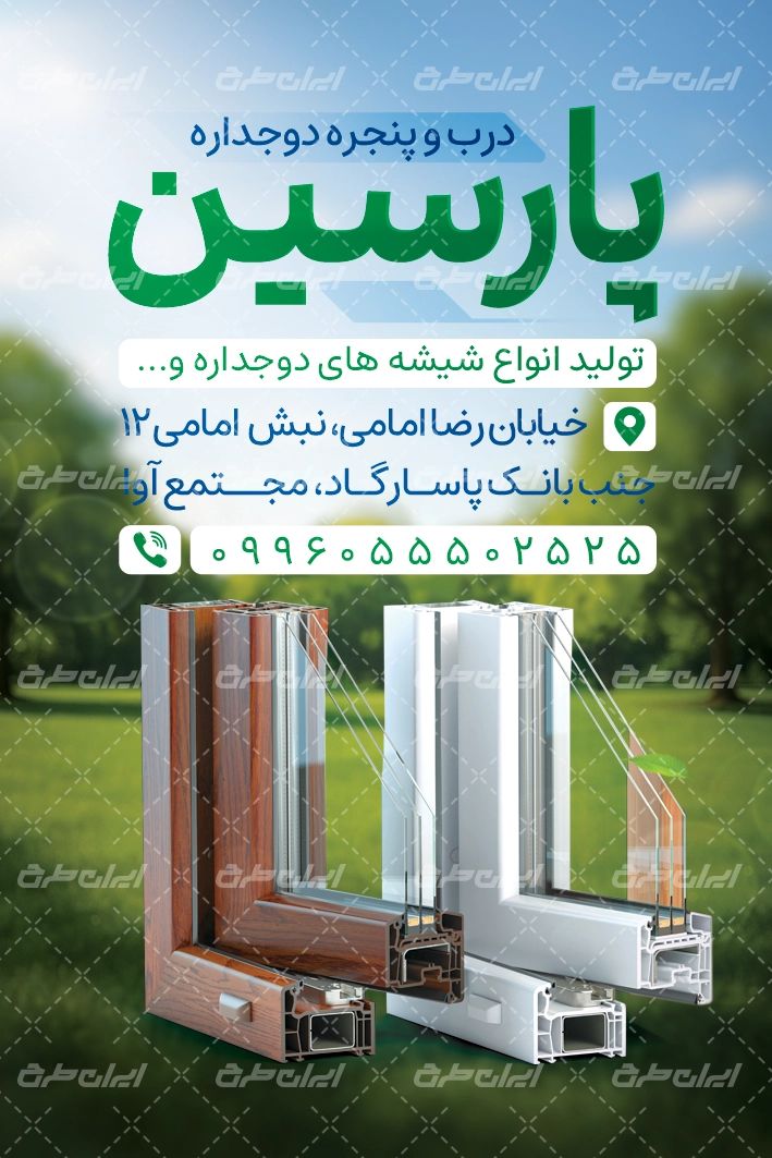 مشخصات فنی طرح کارت ویزیت فروشگاه درب و پنجره چند جداره