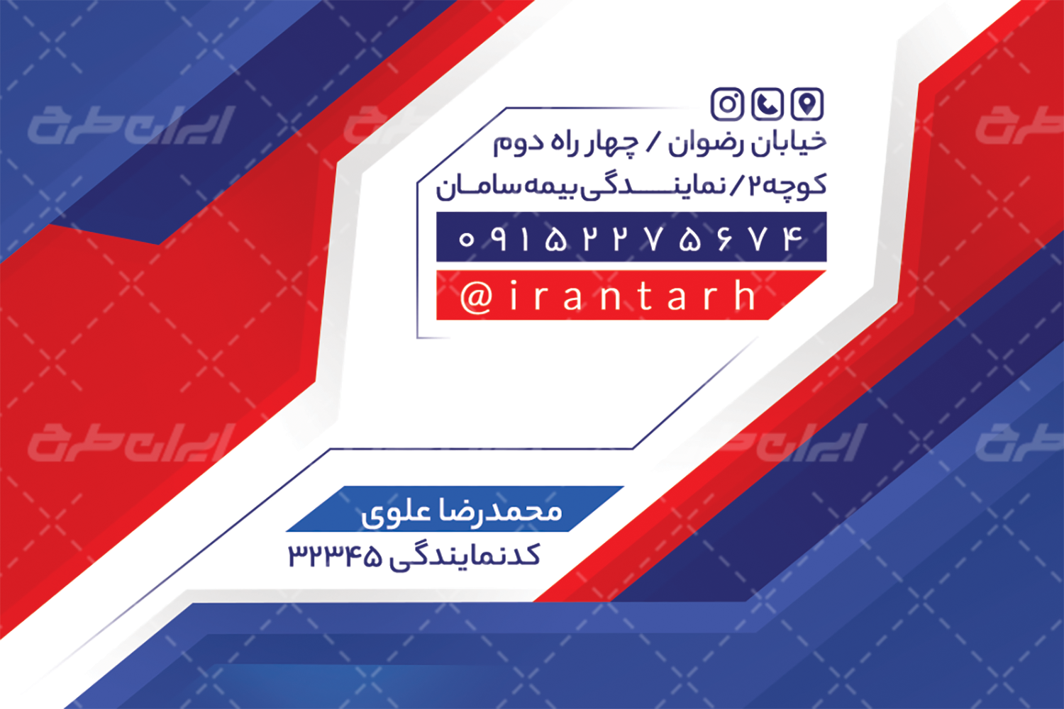 در طراحی این کارت، میتوان از رنگ آبی بهعنوان رنگ غالب پسزمینه استفاده کرد تا فضا حس حرفهای و رسمی داشته باشد. سپس با استفاده از خطوط یا عناصر قرمز در گوشهها یا در اطراف عنوان خدمات، تعادل رنگی مناسبی ایجاد میشود. این ترکیب رنگی، نه تنها زیبا و مدرن است، بلکه برای مشتریانی که به دنبال یک نماینده بیمهی قابل اعتماد و پاسخگو هستند، بسیار تاثیرگذار خواهد بود.