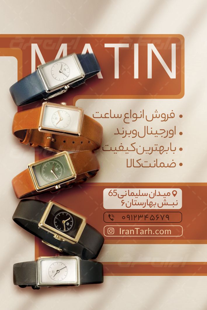 مشخصات فنی طرح کارت ویزیت فروشگاه ساعت