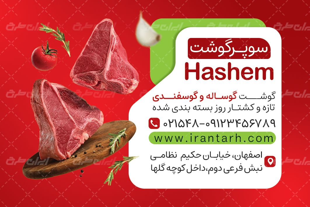 طرح لایه باز کارت ویزیت سوپر گوشت و قصابی