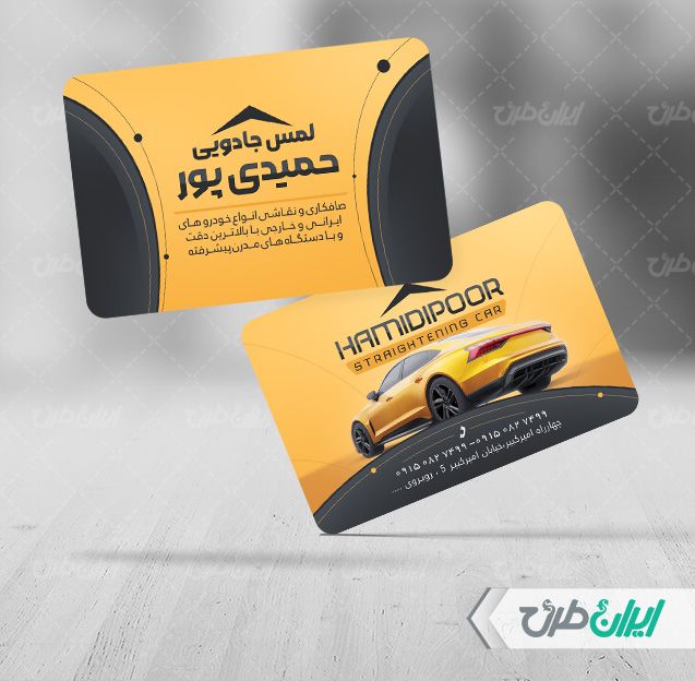 - طراحی شیک و کاربردی کارت ویزیت که مناسب شغل صافکاری و نقاشی اتومبیل می باشد.