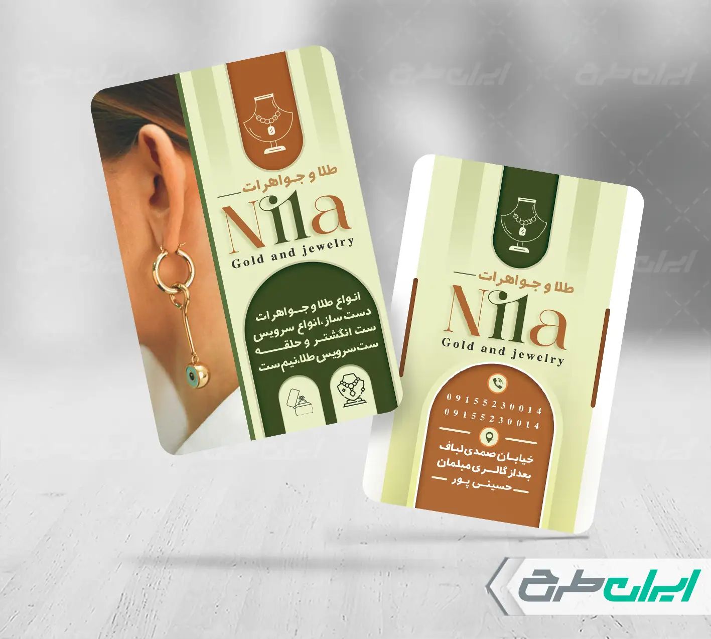 - استفاده مناسب از عکس با کیفیت طلا و جواهرات در طرح کارت ویزیت فروشگاه طلا و جواهر