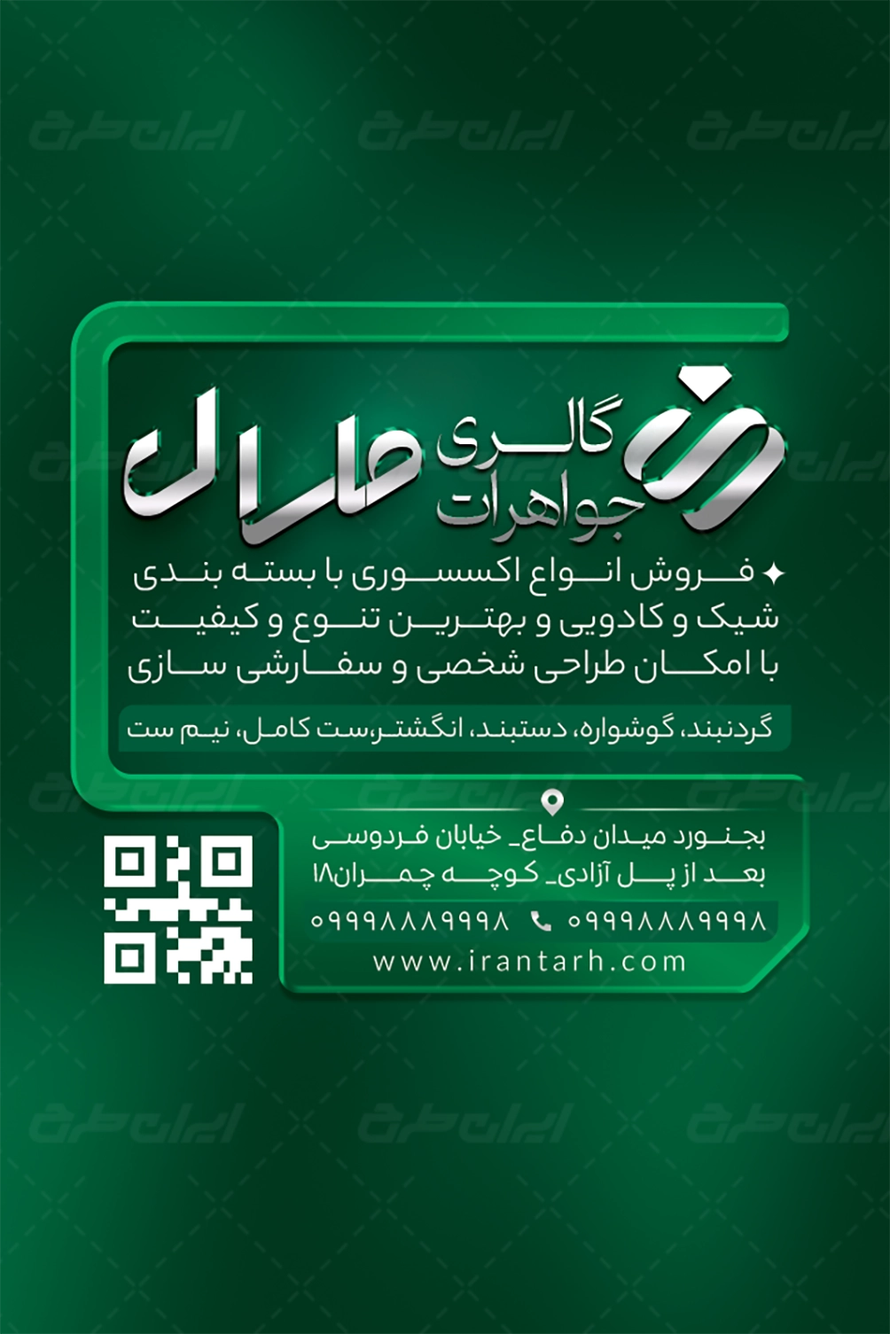 طرح کارت ویزیت طلا جواهری شامل: