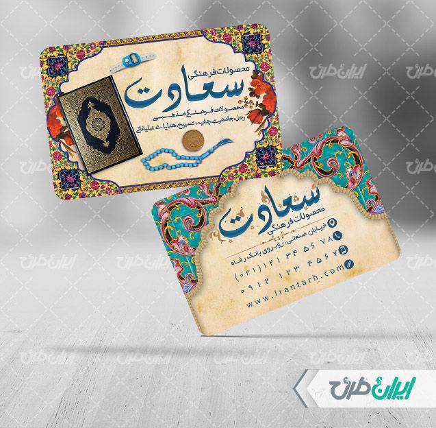 مشخصات فنی طرح کارت ویزیت فروشگاه محصولات فرهنگی مذهبی