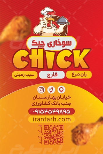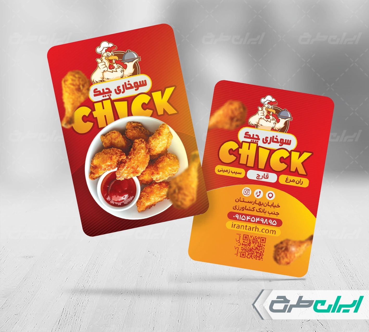 - طراحی کارت ویزیت با استفاده از تصویر مرغ سوخاری