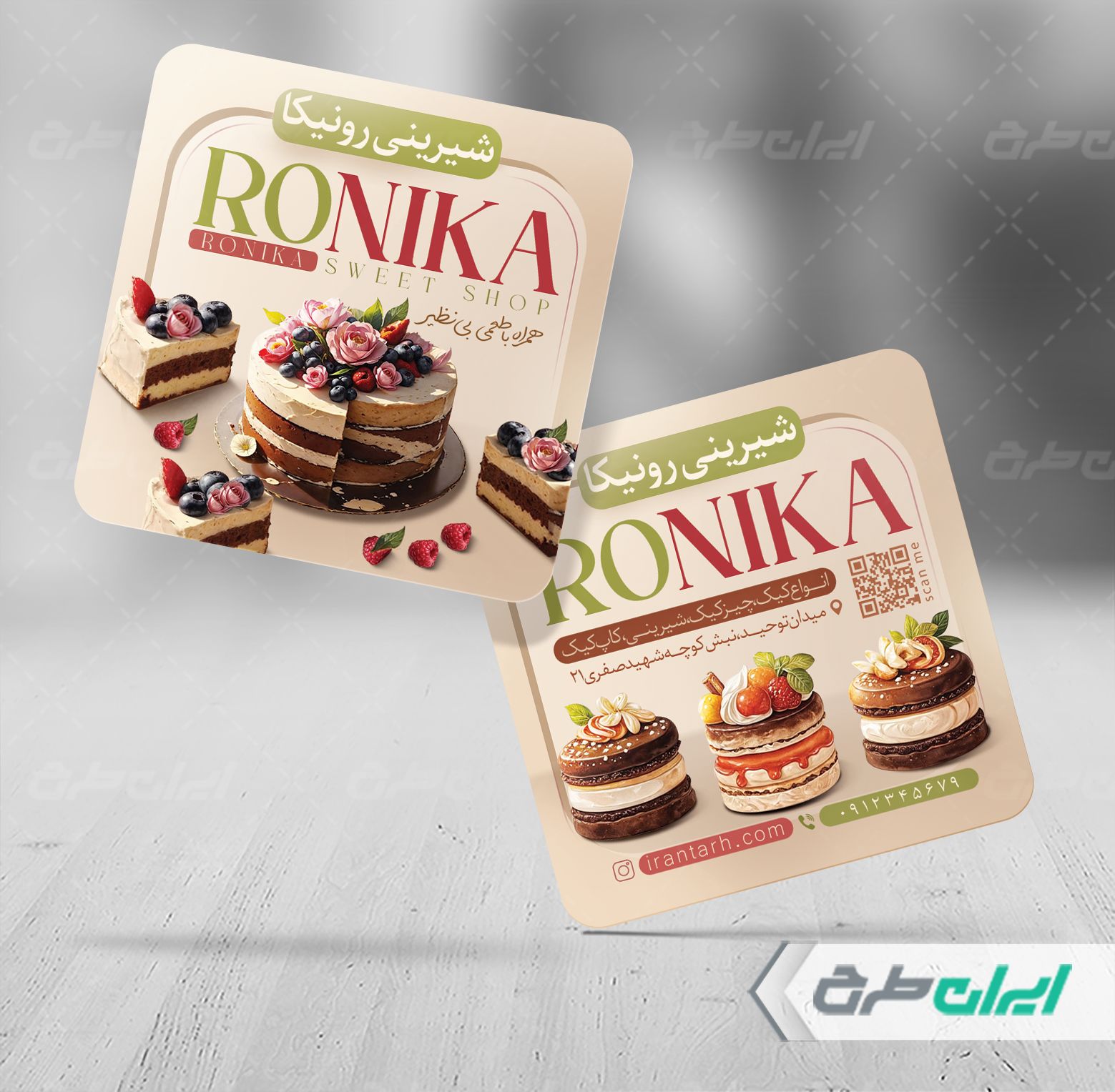 کارت ویزیت لایه باز شیرینی فروشی، جهت بازاریابی و تبلیغات این دسته از مغازه ها توسط تیم طراحان ایران طرح طراحی و در دسترس کاربران سایت قرار گرفته است.