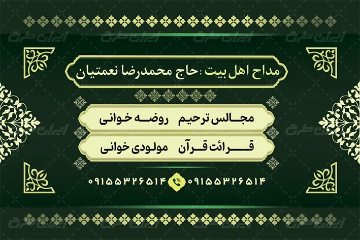 کارت ویزیت مداح ،جهت تبلیغات این دسته از مشاغل توسط تیم ایران طرح طراحی شده است.