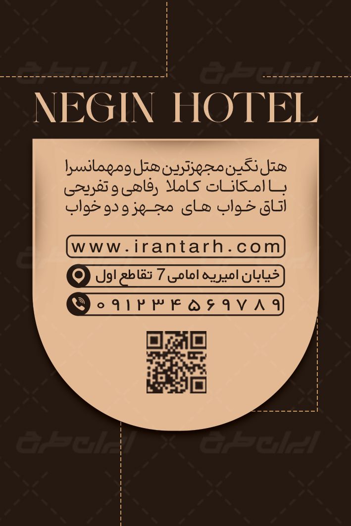 طرح کارت ویزیت هتل و مهمان سرا شامل: