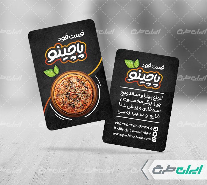 مشخصات فنی طرح کارت ویزیت پیتزا فروشی