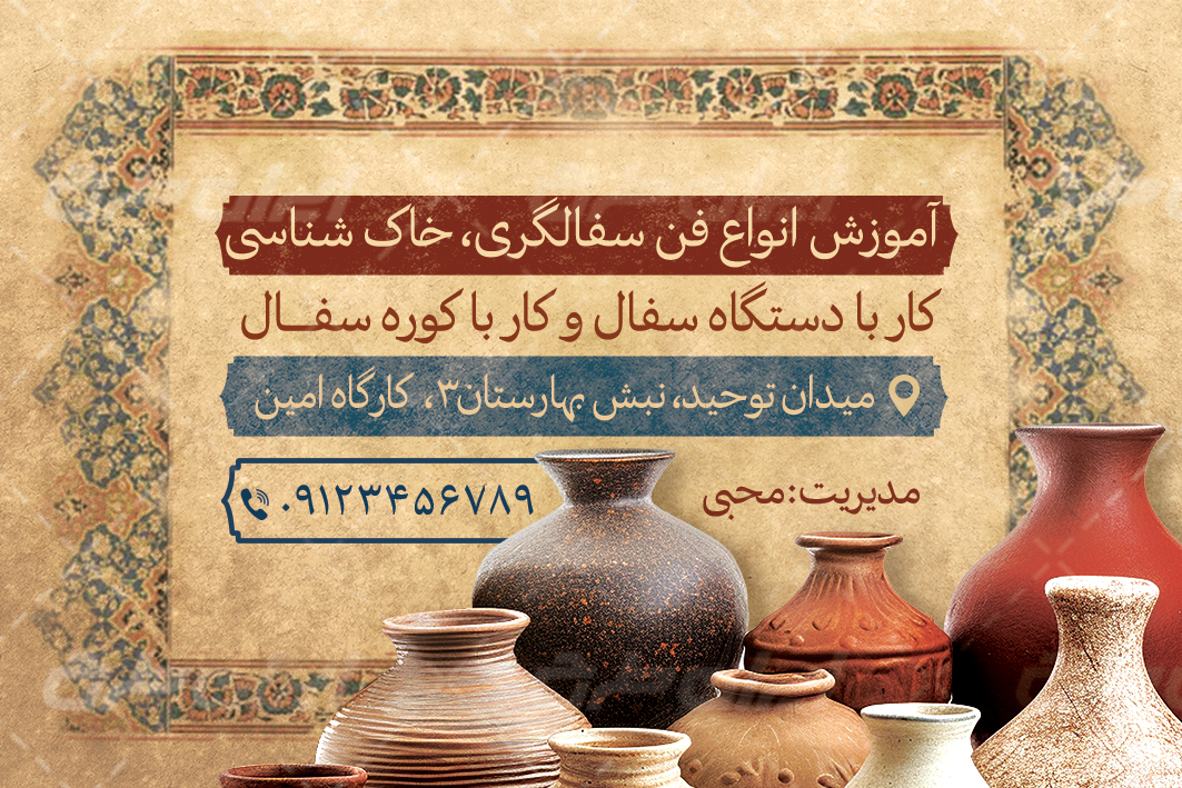 طرح کارت ویزیت آموزشگاه سفالگری شامل: