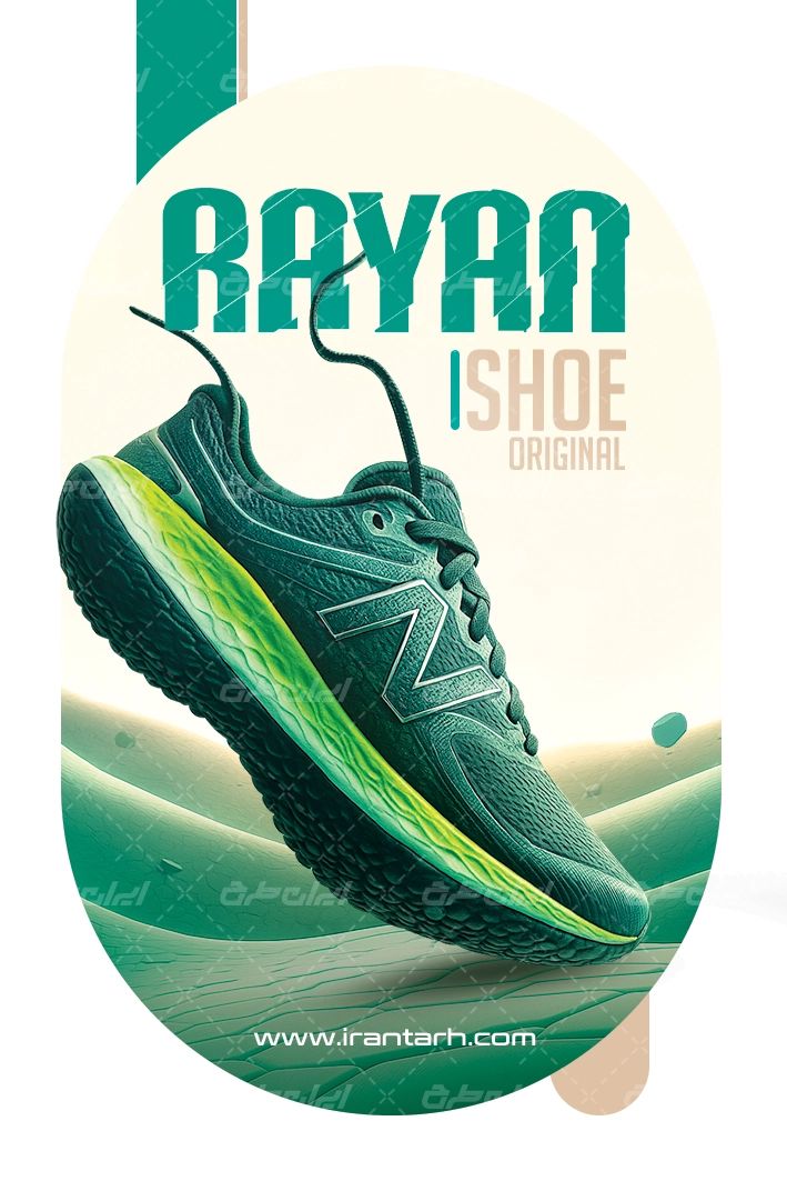 عکس با کیفیت کفش اسپرت، لیبل و شیپ های کاربردی می باشد که توسط طراحان ایران طرح در نرم افزار فتوشاپ طراحی شده است.
