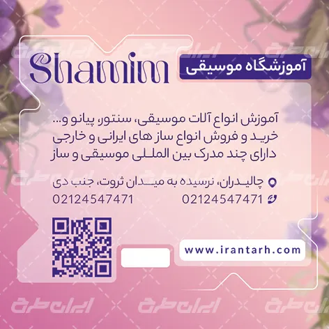 طرح کارت ویزیت لایه باز آموزشگاه موسیقی، توسط تیم ایران طرح برای بازاریابی و تبلیغات این فروشگاه طراحی شده است.
