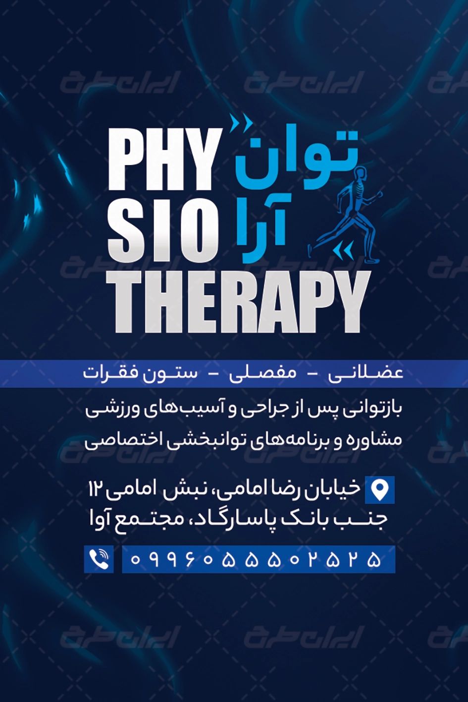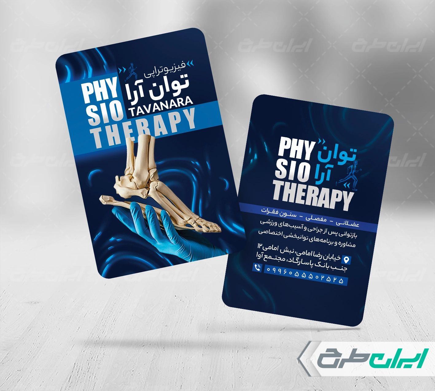 طرح لایه باز کارت ویزیت فیزیوتراپی، جهت بازاریابی و تبلیغات این دسته از مشاغل توسط تیم طراحان ایران طرح طراحی و در دسترس کاربران سایت قرار گرفته است.
