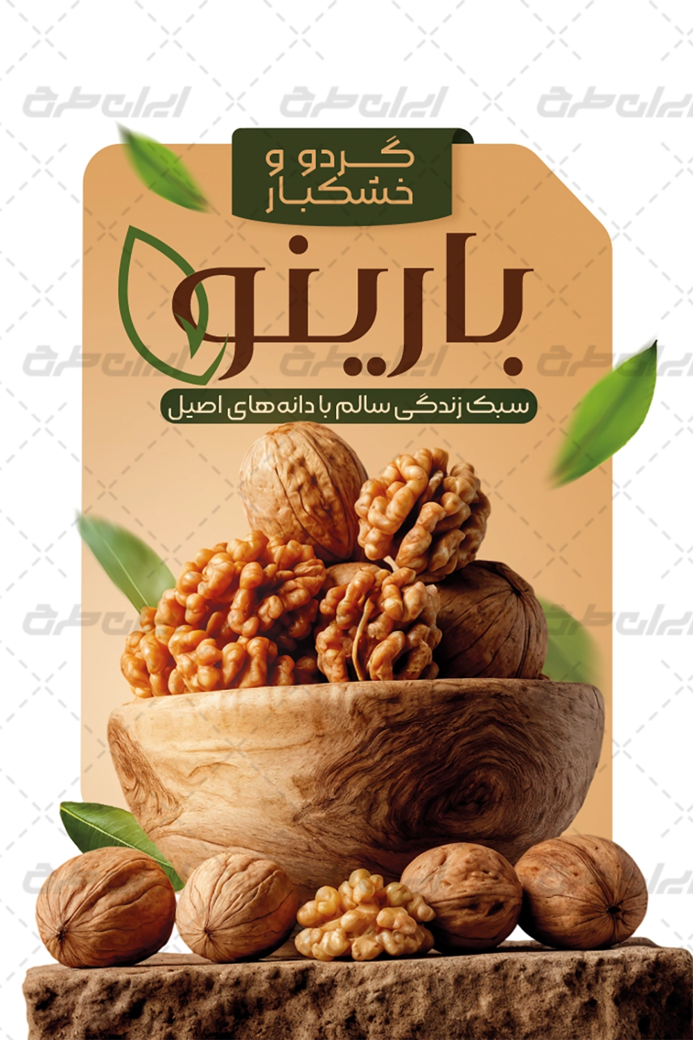 تصویرظرف گردو، گردو، وکتور و لیبل و شیپ های کاربردی می باشد. به دلیل لایه باز (قابل ویرایش توسط کاربران در نرم افزار فتوشاپ Adobe Photoshop) بودن و کیفیت بالای عناصر و المان های استفاده شده در طرح، می توانید علاوه بر چاپ کارت ویزیت (به صورت افقی و دورو )، چاپ تراکت و بنر ، در استوری اینستاگرام و سایر پلت فرم های فضای مجازی جهت تبلیغات و بازرایابی گسترده تر استفاده نمایید.