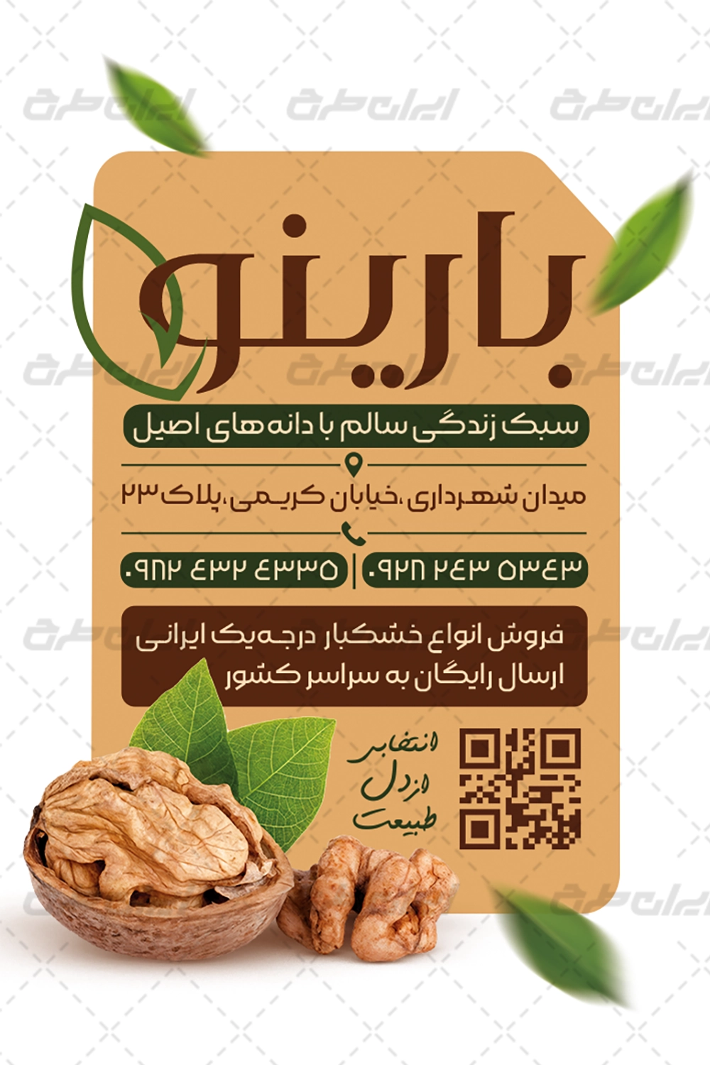 کارت ویزیت پخش گردو ،جهت تبلیغات این دسته از فروشگاه ها توسط تیم ایران طرح طراحی شده و در اختیار کاربران سایت قرار گرفته است.