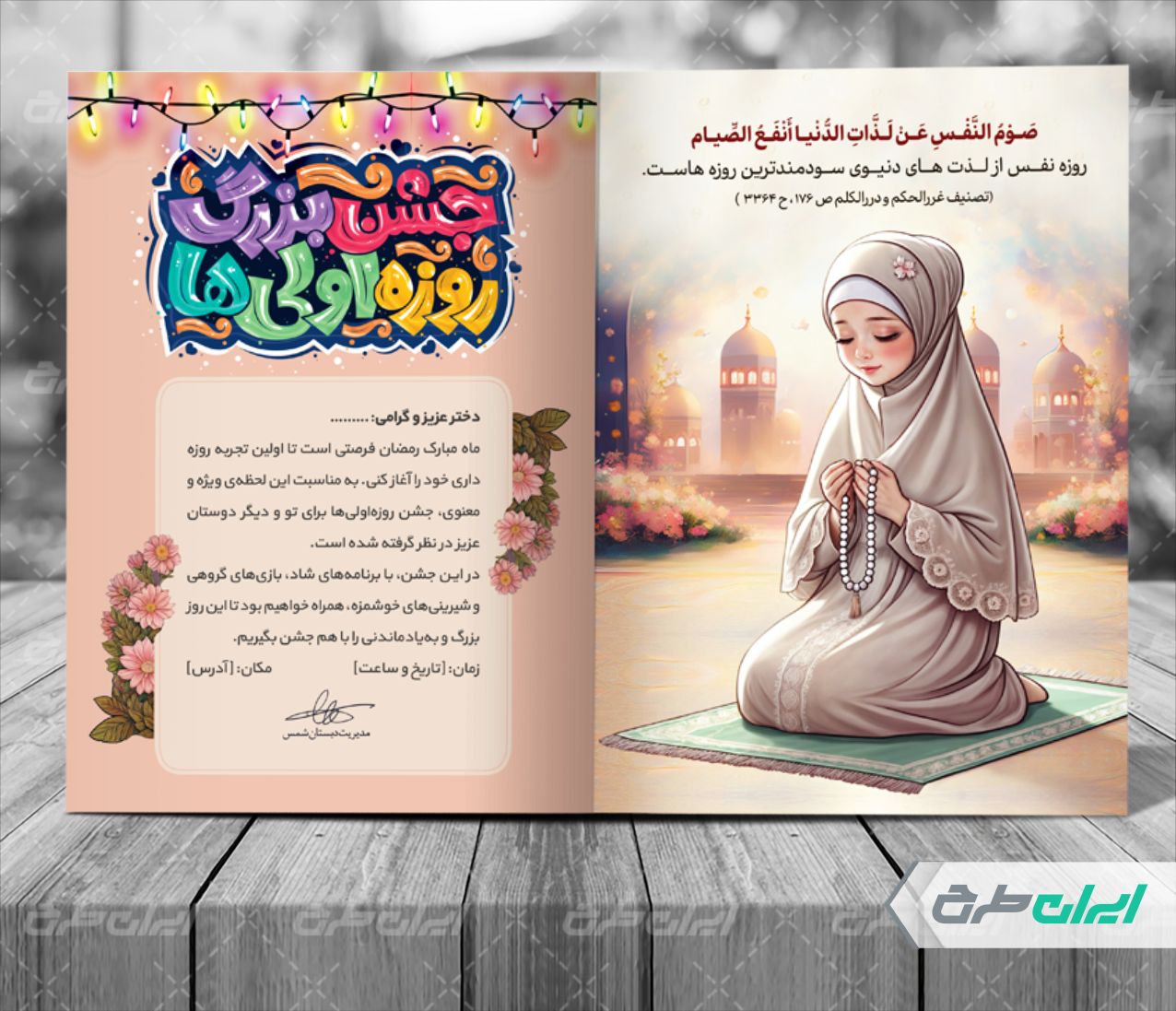 نکات طرح لایه باز کارت پستال جشن روزه اولی ها