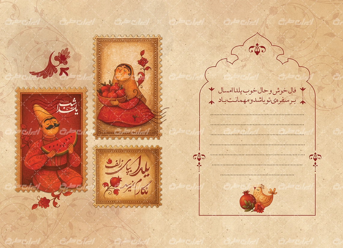 مشخصات فنی طرح لایه باز کارت پستال شب یلدا