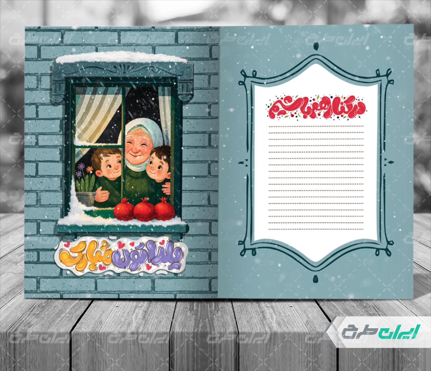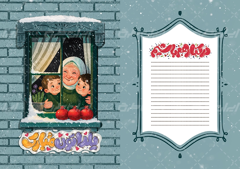 طرح کارت پستال یلدا در نرم افزار فتوشاپ به صورت لایه باز طراحی شده و شامل :