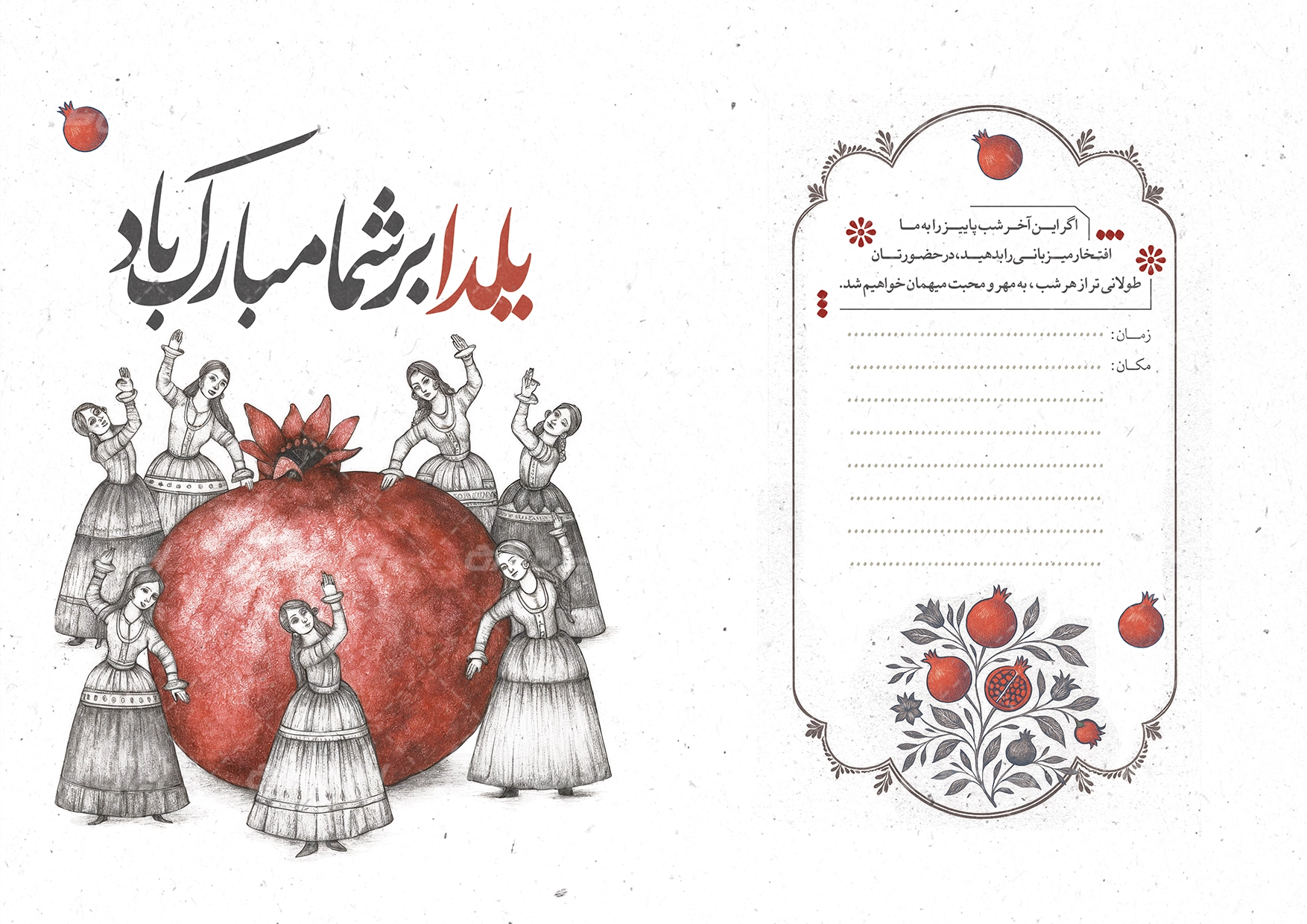 طرح کارت پستال شب یلدا , طرح بنر شب یلدا , کارت پستال شب یلدا , کارت دعوت شب یلدا , طرح کارت دعوت شب یلدا , طرح شب یلدا , کارت تبریک شب یلدا , تصویر سازی , تصویر انار یلدایی , کارت پستال شب یلدا , بنر شب یلدا , بنر لایه باز شب یلدا , طرح لایه باز بنر شب یلدا , شب یلدا ,