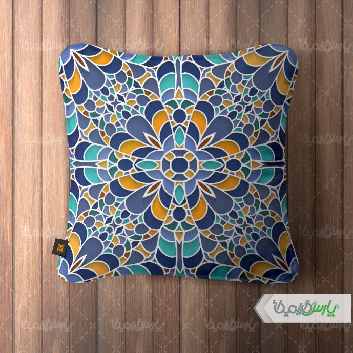 در طرح سابلیمشن کوسن از طرح کاشی با نقوش تذهیب استفاده شده است.