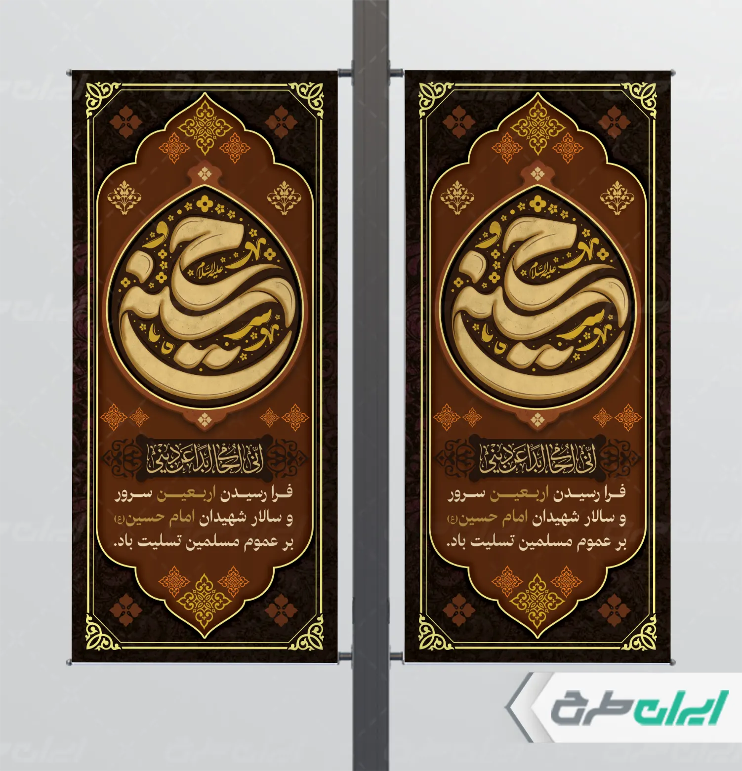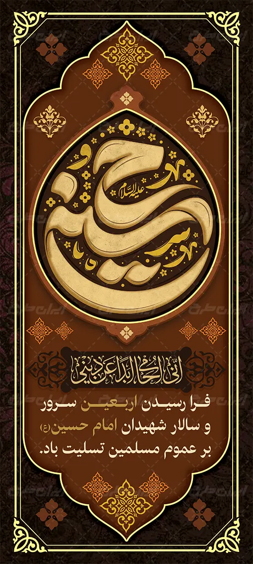 تذهیب و متن تسلیت اربعین حسینی می باشد که توسط طراحان ایران طرح در نرم افزار فتوشاپ طراحی شده است.