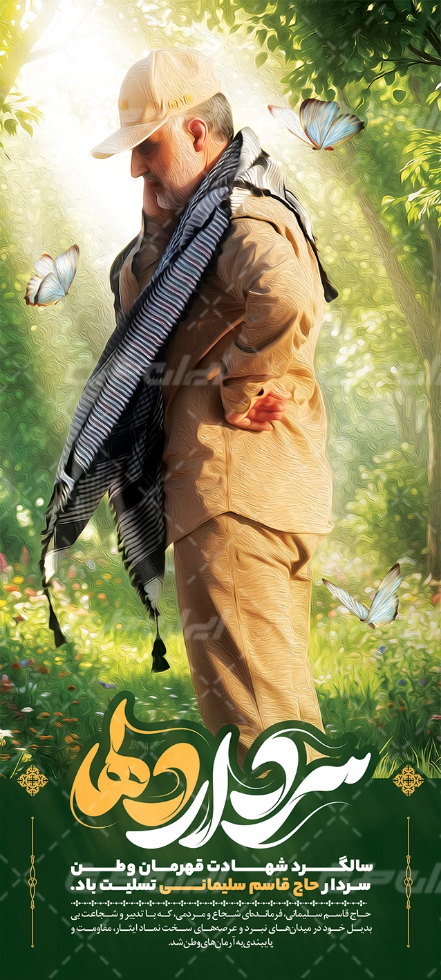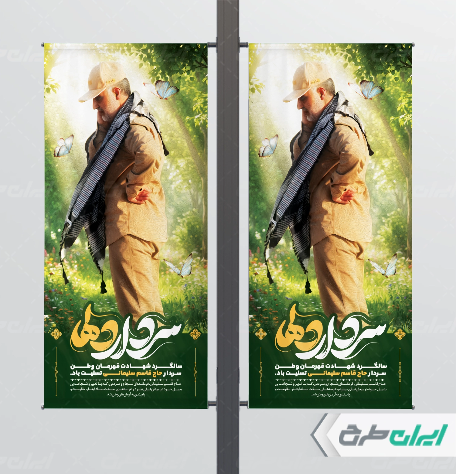 بنر شهادت سردار قاسم سلیمانی ، توسط تیم حرفه ای ایران طرح جهت استفاده کاربران سایت طراحی و به صورت لایه باز در دسترس کاربران قرار گرفته است.