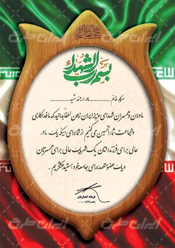 طرح لوح تقدیر خانواده شهدا، توسط تیم ایران طرح جهت استفاده کاربران طراحی و در دسترس کاربران سایت قرار گرفته است.
