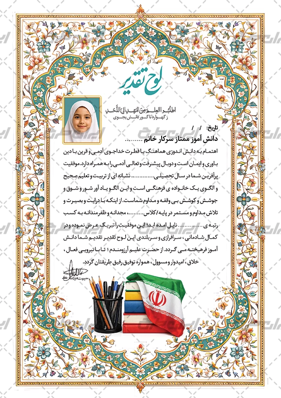ارائه این تقدیرنامهها بهویژه در مراسمها و برنامههای خاص، میتواند موجب افزایش اعتماد به نفس و ایجاد حس رقابت مثبت در دانشآموزان شود.