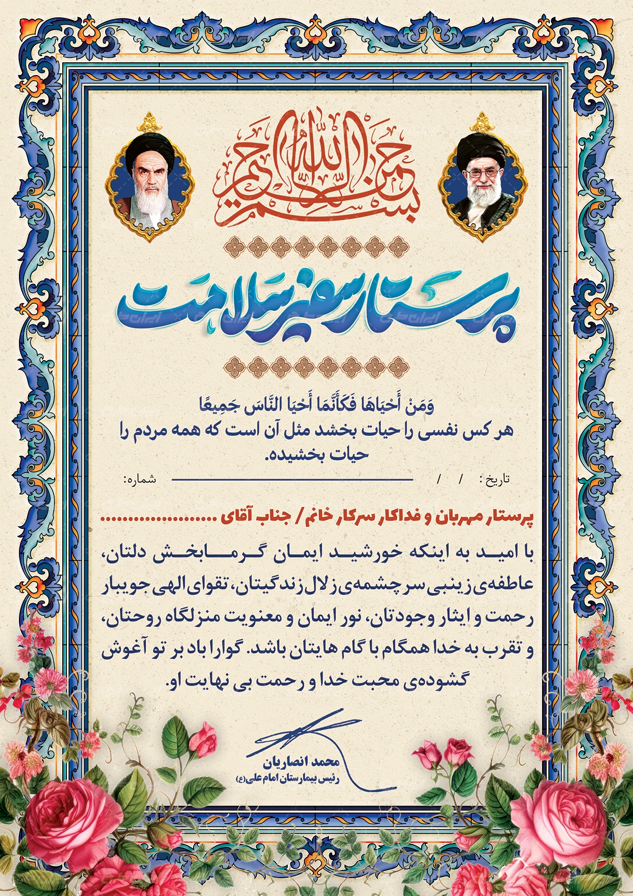 طرح لوح تقدیر روز پرستار