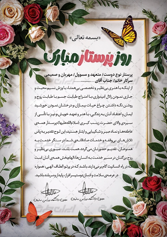 طرح لایه باز لوح تقدیر روز پرستار، یک فایل طراحیشده با فرمت قابل ویرایش (معمولاً PSD یا AI) است که به مناسبت گرامیداشت روز پرستار تهیه میشود. این طرحها معمولاً دارای المانهای بصری مرتبط با حرفه پرستاری مانند نمادهای سلامت، تصویر حضرت زینب (س) به عنوان الگوی پرستاران، یا پسزمینههایی با رنگهای آرامشبخش هستند. وجود لایههای قابل ویرایش به طراحان و مسئولان این امکان را میدهد تا متن دلخواه، نام پرستار، امضای مقام مسئول و تاریخ را به سادگی وارد و شخصیسازی کنند.