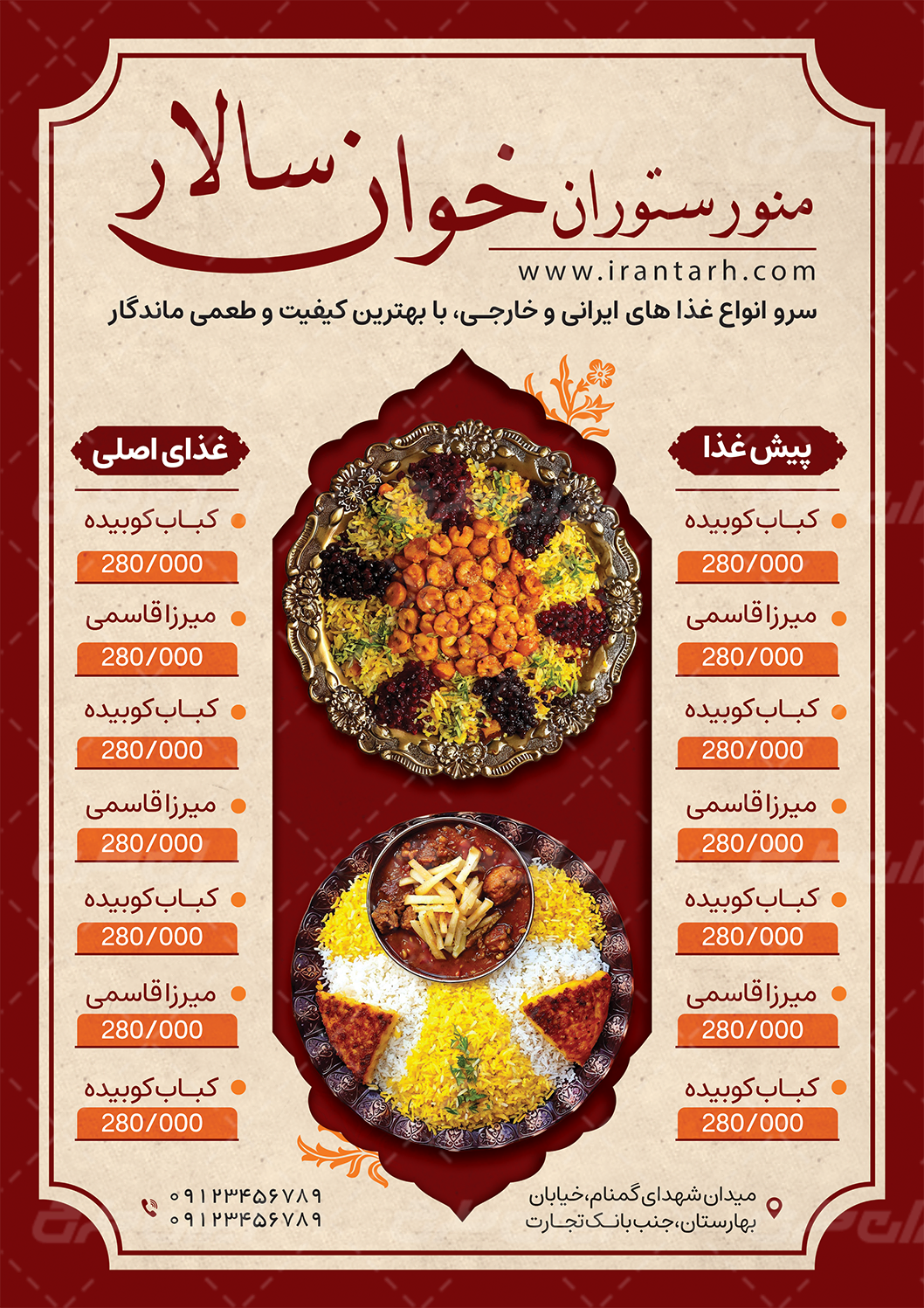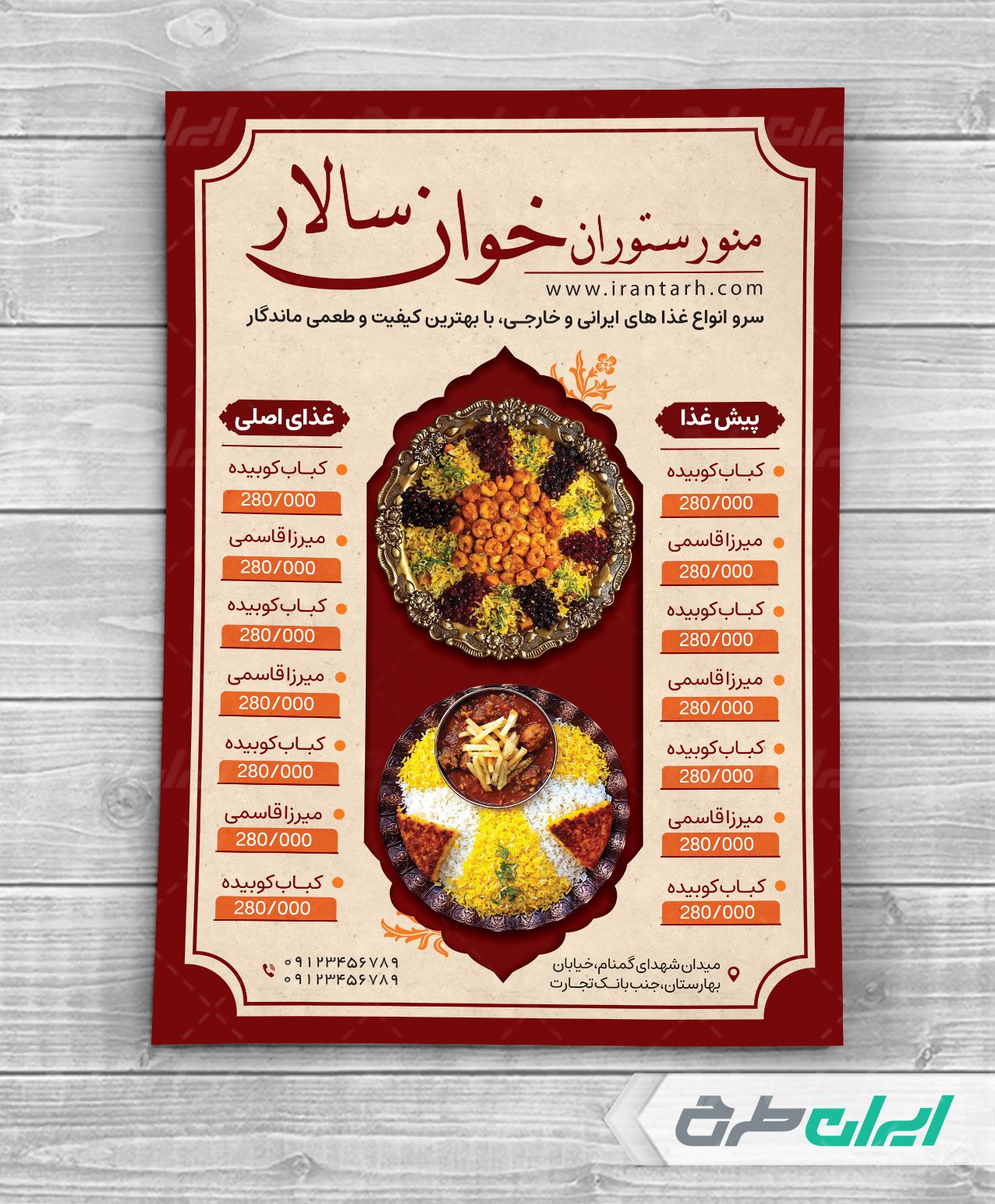 طرح منوی رستوران شامل: