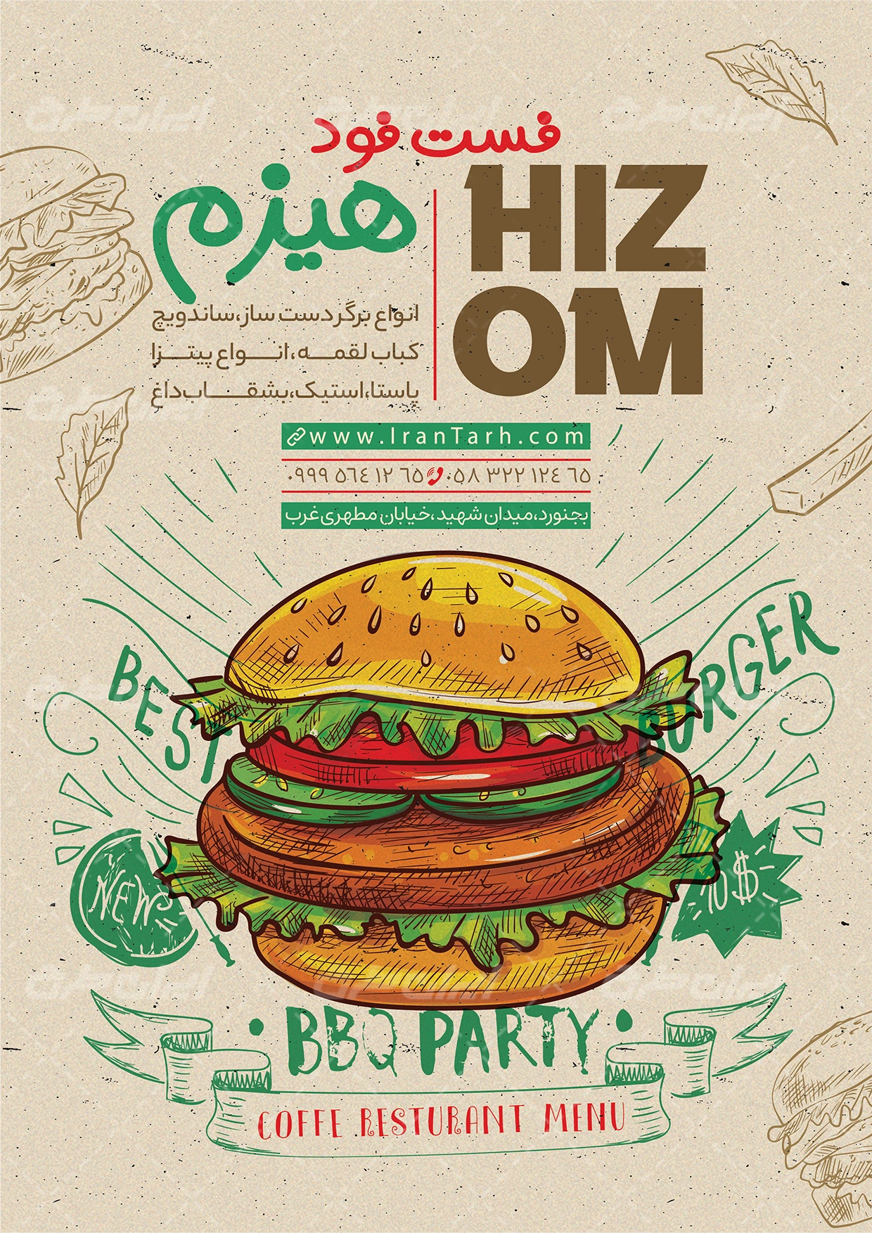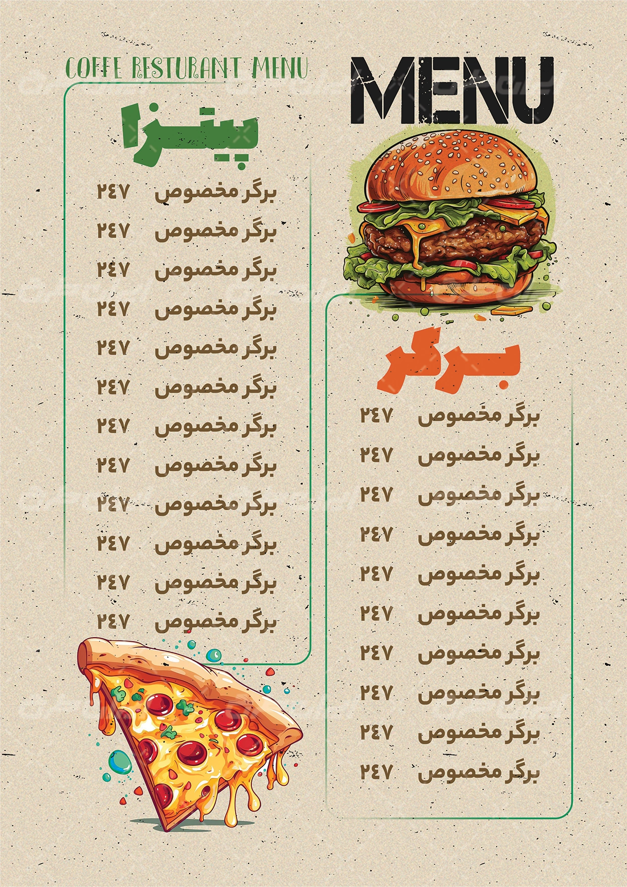 عناصر طرح منو فست فودی