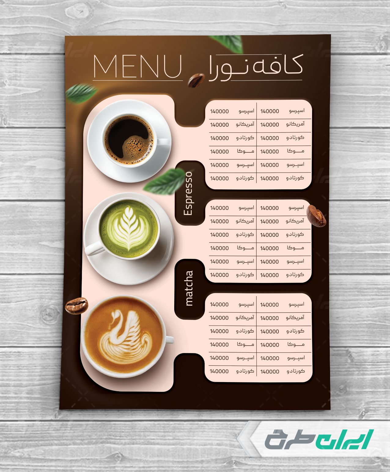 تیم ایران طرح طرح منو کافی شاپ را برای بازاریابی و تبلیغات گسترده تر طراحی و در دسترس کاربران سایت قرار داده است.