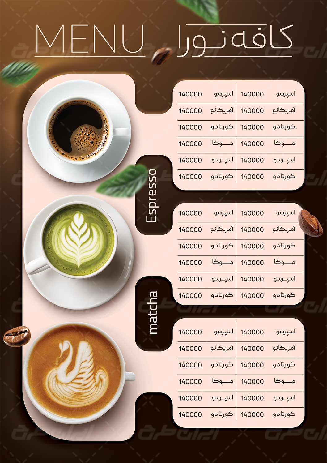طرح منوی کافه قهوه