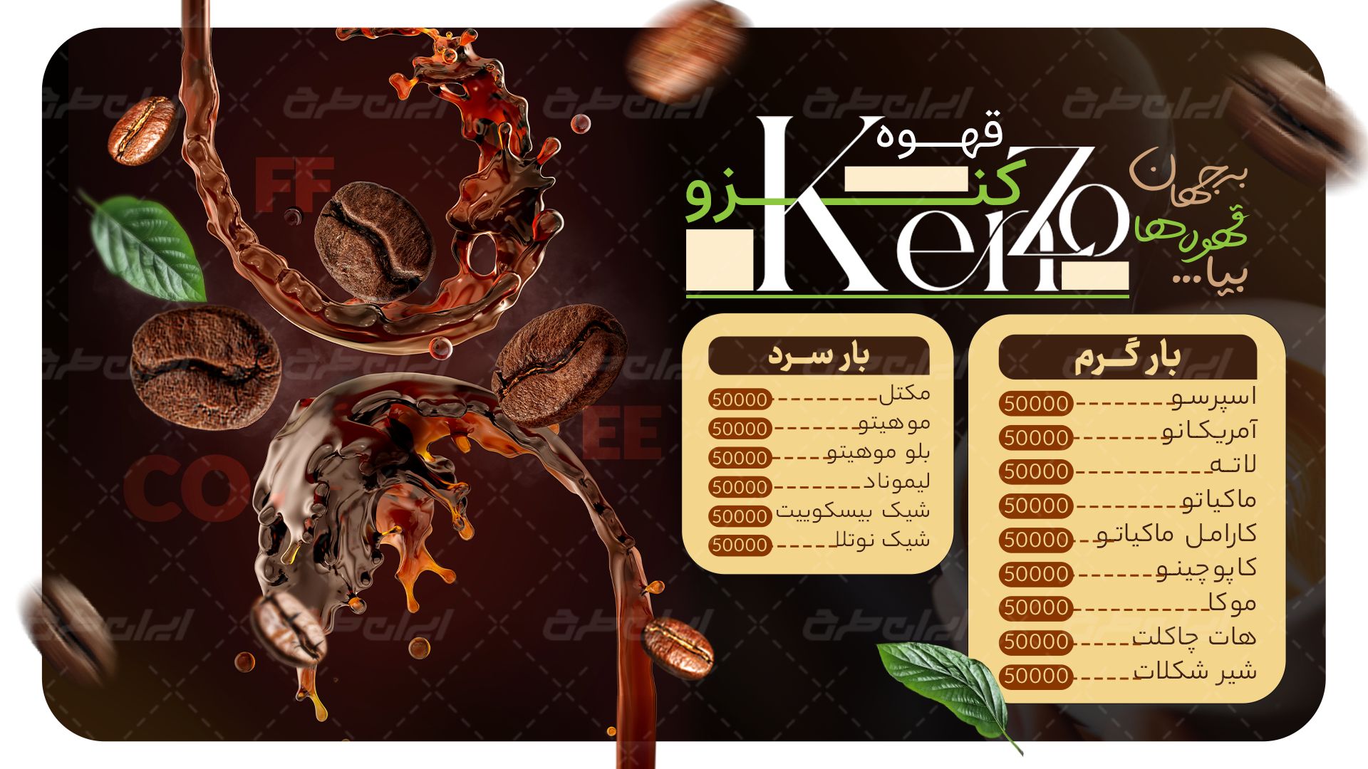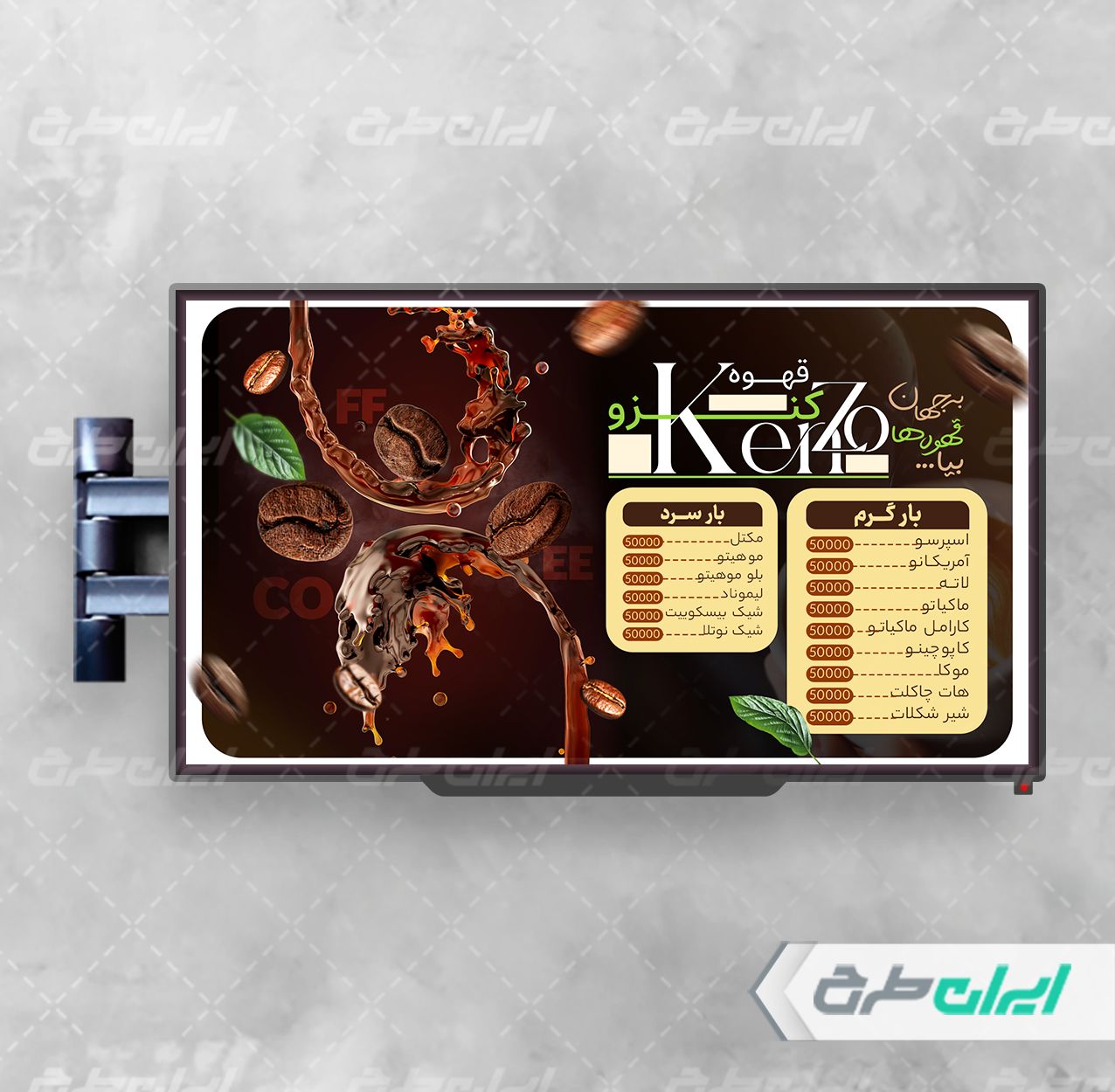 طرح نمایشگر لایه باز کافه توسط تیم ایران طرح برای بازاریابی و تبلیغات این دسته از مشاغل طراحی شده است.