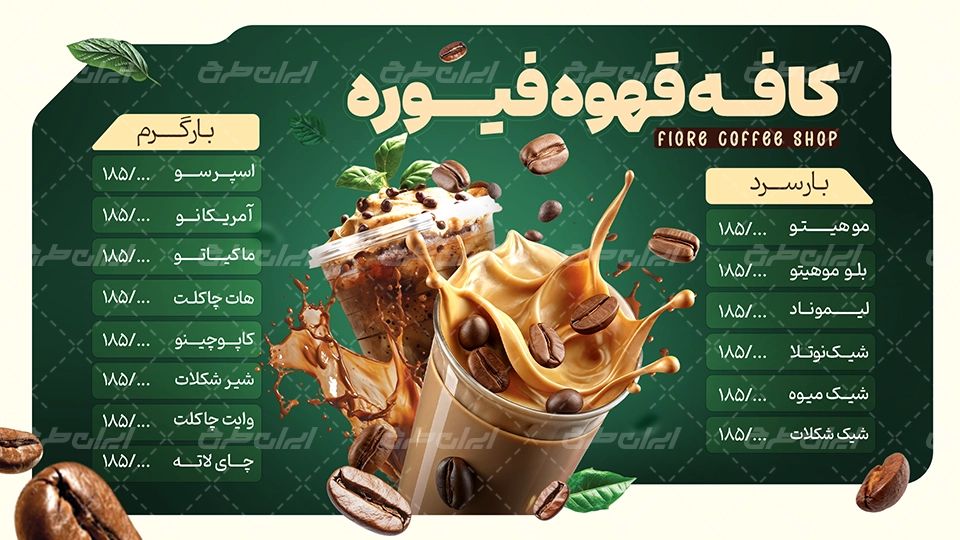 طرح نمایشگر لایه باز کافه توسط تیم ایران طرح برای بازاریابی و تبلیغات این دسته از مشاغل طراحی شده است.