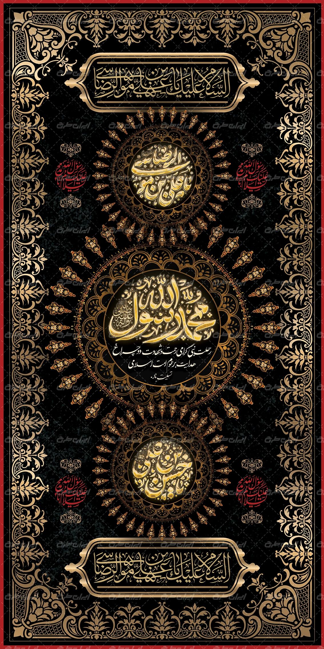 تذهیب و متن تسلیت رحلت پیامبر و شهادت امام حسن و امام رضا (ع) می باشد که توسط تیم ایران طرح طراحی شده است.
