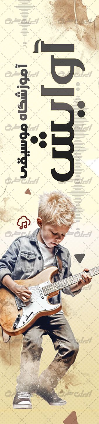 - استفاده مناسب از عکس باکیفیت کودک گیتاریست در طراحی پرچم ساحلی