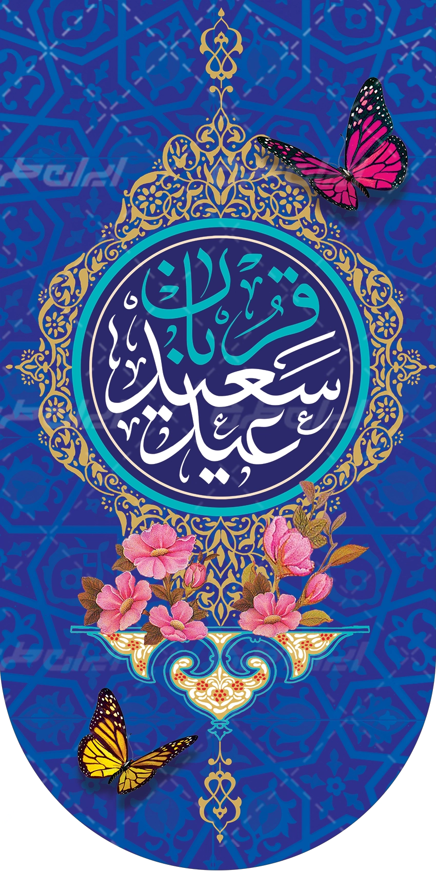 تایپوگرافی عید سعید قربان، تذهیب ،پروانه و متن تبریک عید قربان می باشد که توسط طراحان ایران طرح در نرم افزار فتوشاپ طراحی شده است.