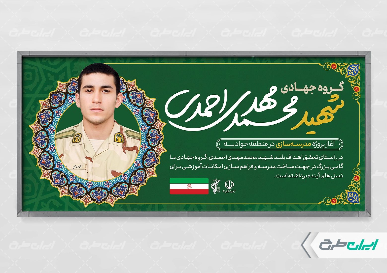طرح پلاکارد اردوهای جهادی با تصویر شهید محمد مهدی احمدی