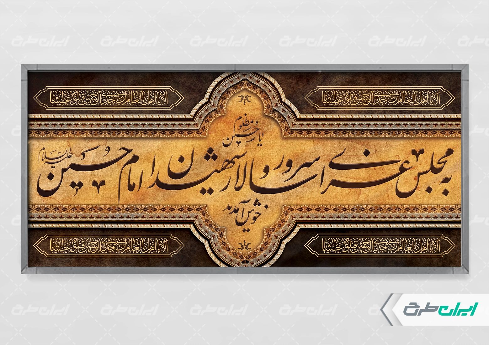 تذهیب و متن تسلیت ایام محرم می باشد که توسط طراحان ایران طرح در نرم افزار فتوشاپ طراحی شده است.