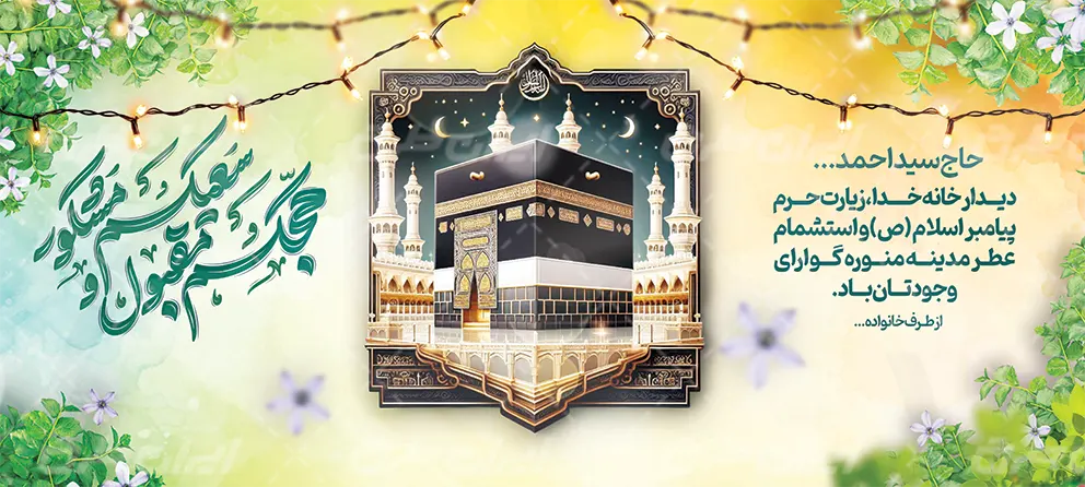 ضمنا به دلیل لایه باز بود طرح بنر خیر مقدم مکه می توانید با استفاده از نرم افزار فتوشاپ تغییرات دلخواه خود را اعمال کنید.