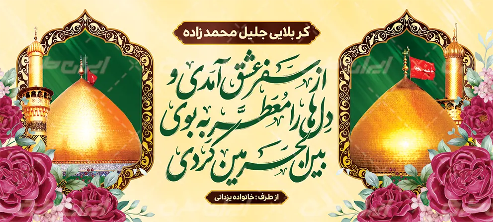 تصویر حرم، تذهیب و متن مرتبط با بنر خیر مقدم می باشد که توسط تیم ایران طرح طراحی شده است.