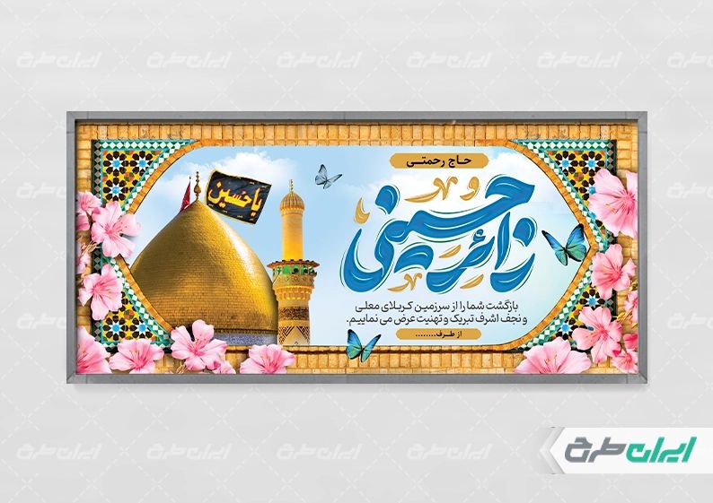 طرح لایه باز بنر خیرمقدم زائرین در بازگشت از کربلا، یکی از ابزارهای تبلیغاتی و معنوی است که در ایام بازگشت زائرین از سفر کربلا، بهویژه در ایام اربعین یا مناسبتهای مشابه، بهکار میرود. این بنرها معمولاً با طراحی خاص و رنگهای مناسب برای این مناسبت، از جمله رنگهای سبز، سفید و مشکی، پیامهای خوشآمدگویی به زائران را با متنهایی چون "خوش آمدید زائران حسین(ع)" و "به خانه خود خوش آمدید" منتقل میکنند. این بنرها بهعنوان نمادی از احترام و محبت به زائرین امام حسین (ع) عمل کرده و احساس تعلق و ارادت را در میان مردم ایجاد میکند.