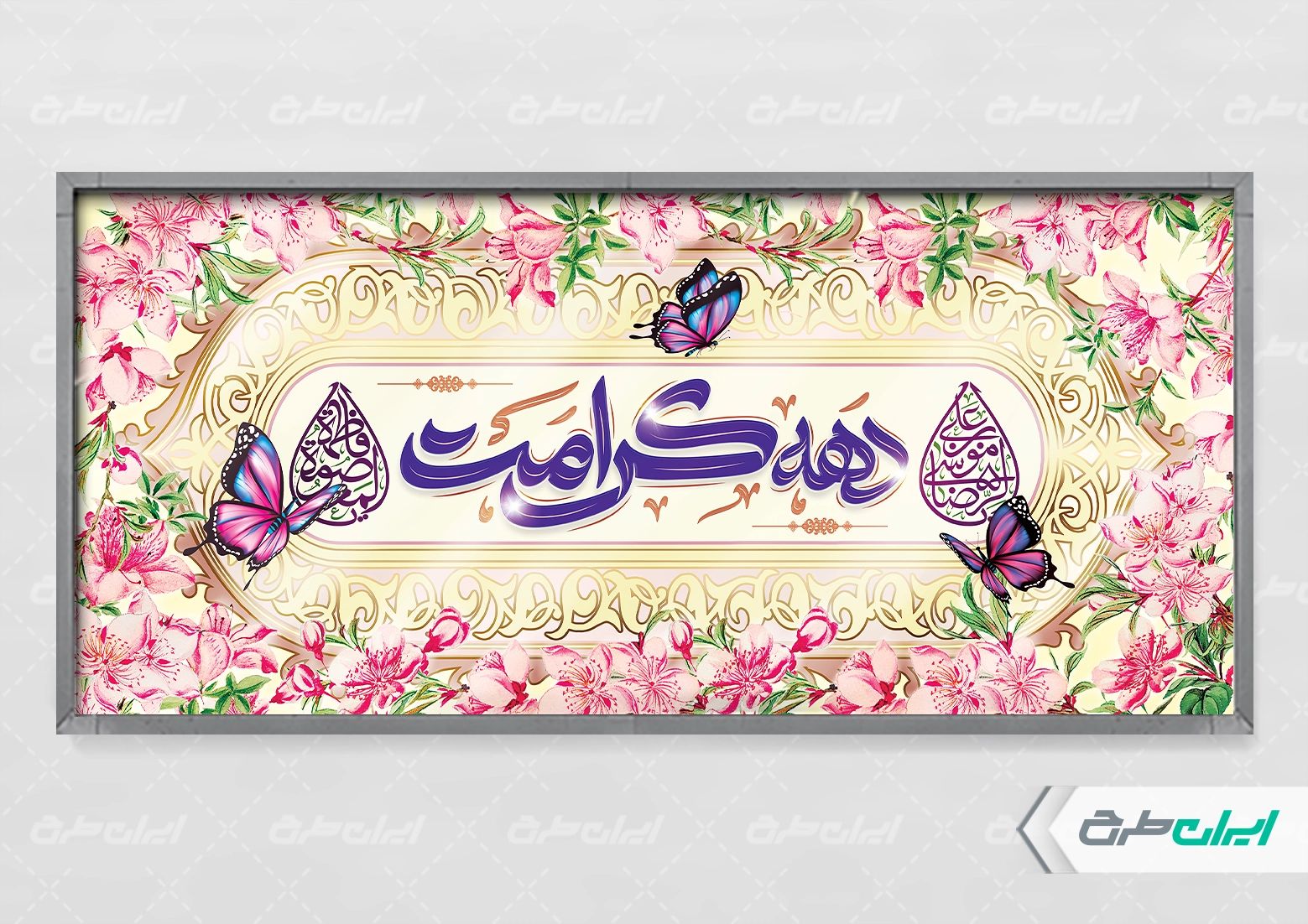 بنر دهه کرامت، توسط تیم حرفه ای ایران طرح جهت استفاده کاربران سایت طراحی و به صورت لایه باز در دسترس کاربران قرار گرفته است.