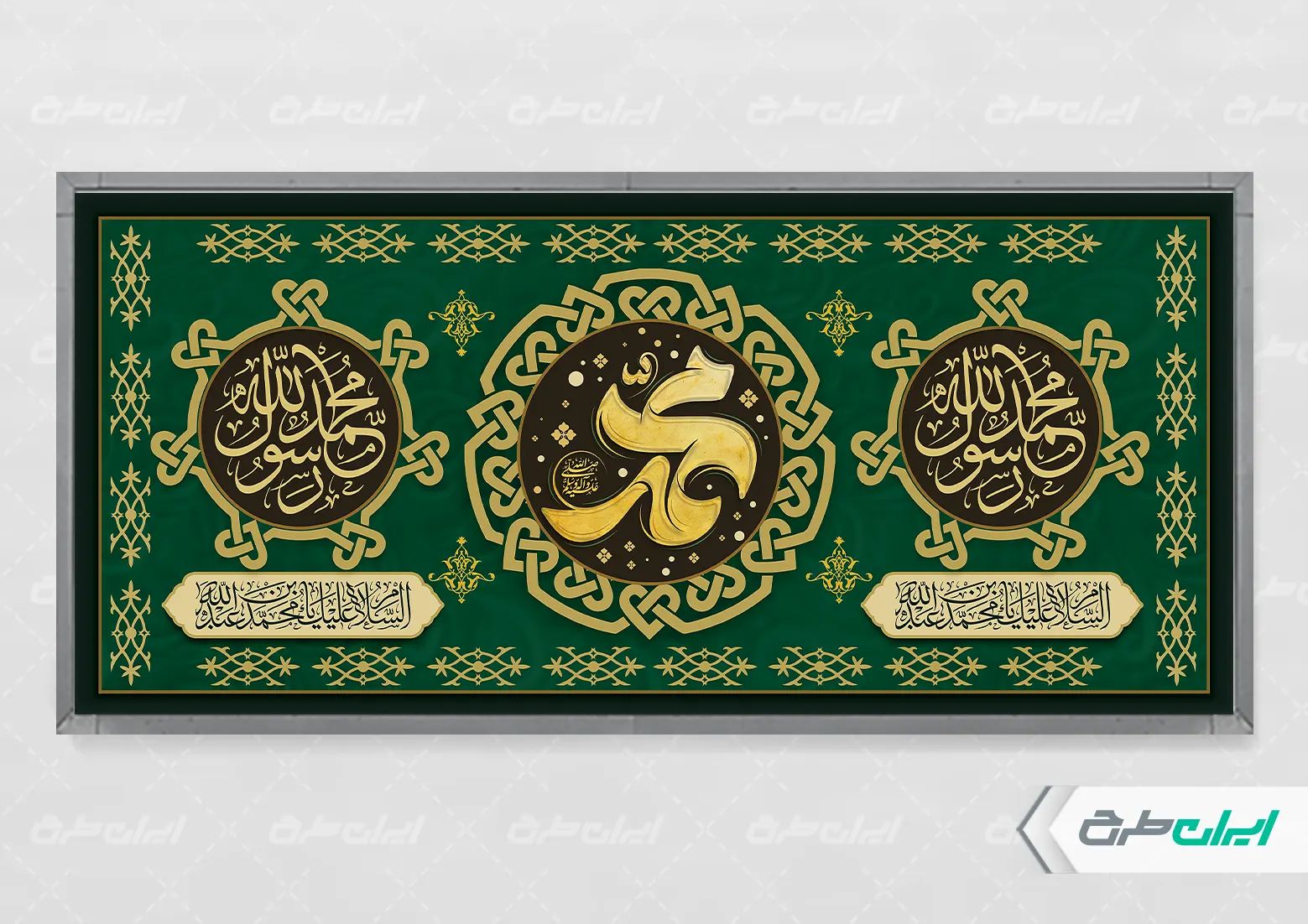 تذهیب، نقوش مذهبی و متن تسلیت رحلت پیامبر و شهادت امام حسن و امام رضا (ع) می باشد که توسط تیم ایران طرح طراحی شده است.