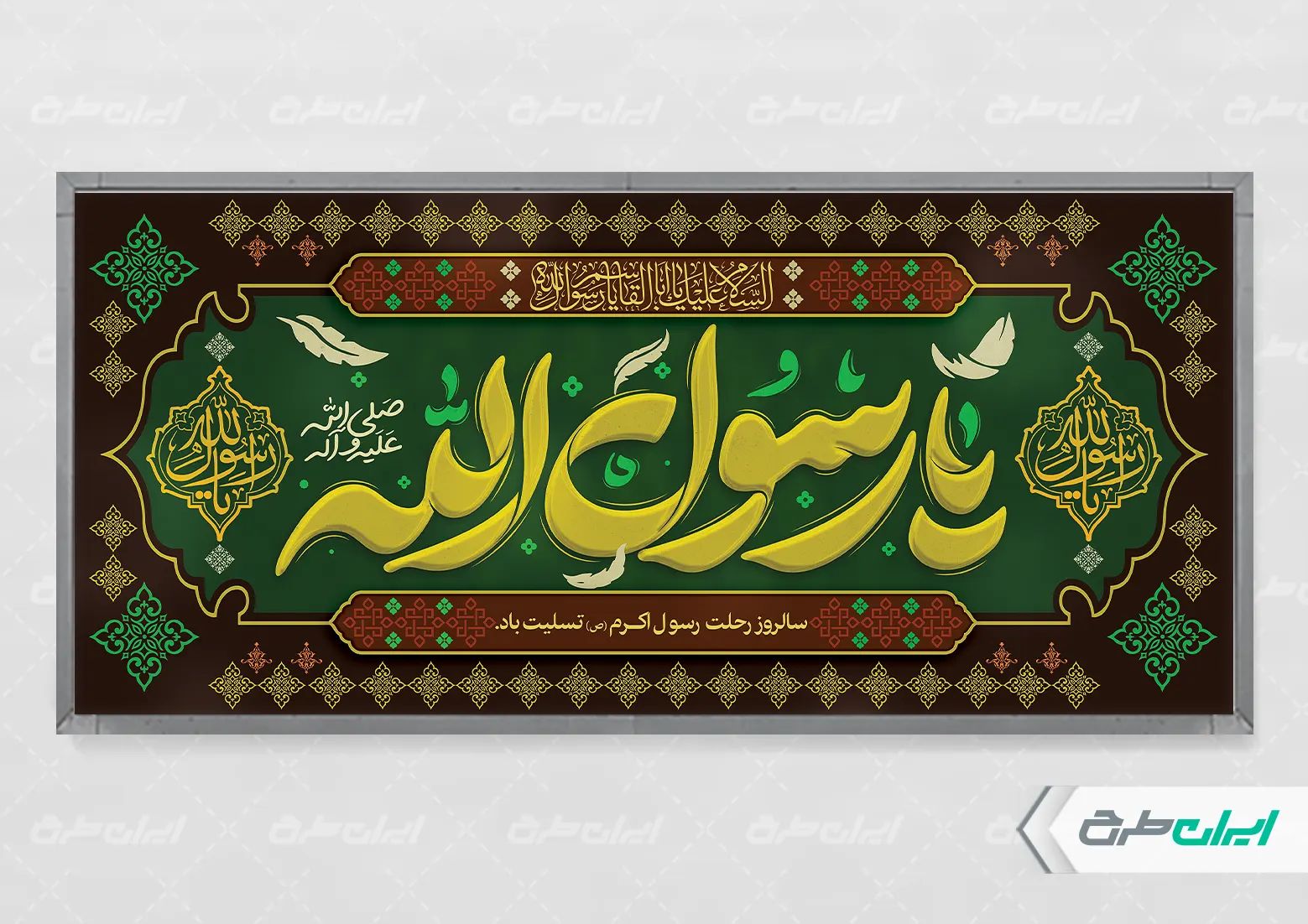 طرح بنر رحلت پیامبر اکرم، توسط تیم با تجربه ایران طرح جهت استفاده کاربران سایت طراحی و به صورت لایه باز در دسترس کاربران قرار گرفته است.