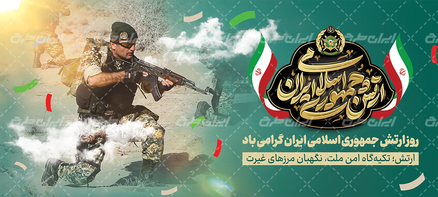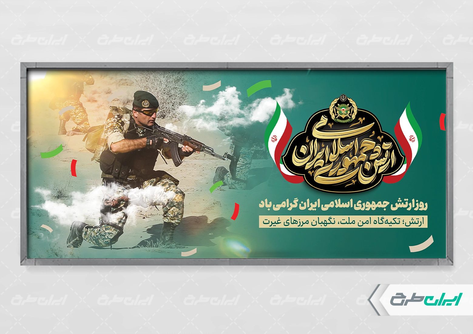بنر روز ارتش جمهوری اسلامی، توسط تیم حرفه ای ایران طرح جهت استفاده کاربران سایت طراحی و به صورت لایه باز در دسترس کاربران قرار گرفته است.