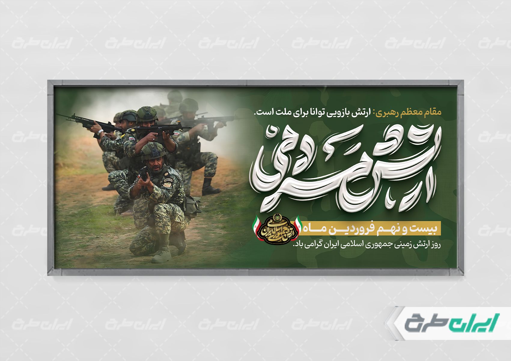 بنر روز ارتش جمهوری اسلامی، توسط تیم حرفه ای ایران طرح جهت استفاده کاربران سایت طراحی و به صورت لایه باز در دسترس کاربران قرار گرفته است.